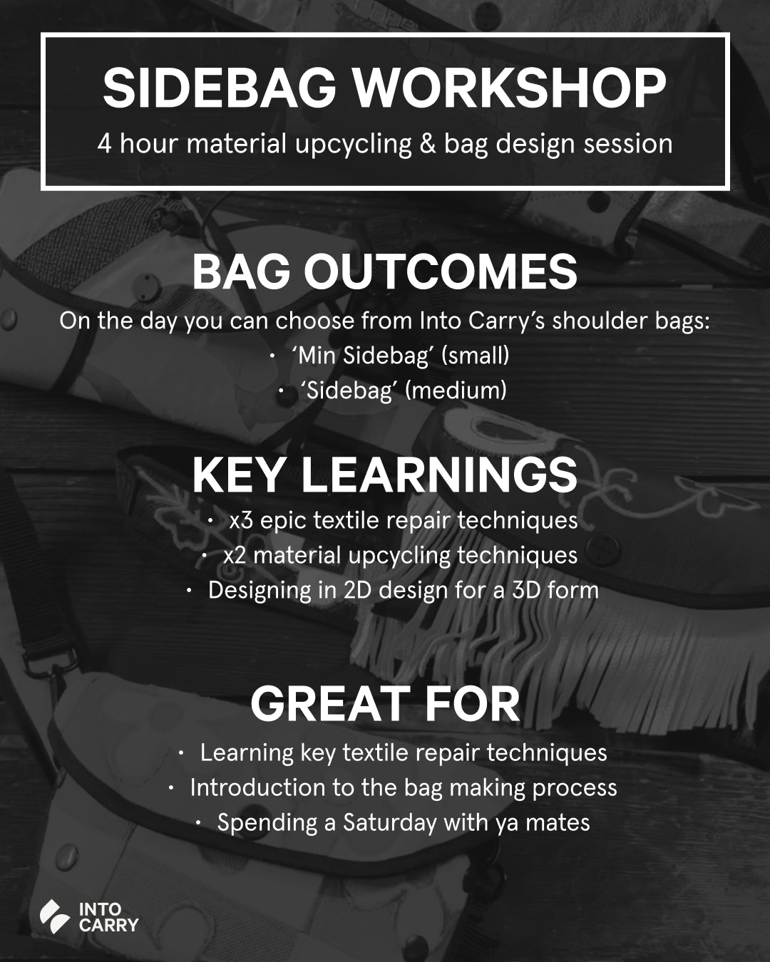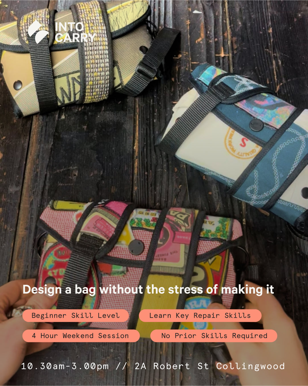 🌎 After the workshop, Into Carry will turn your handmade design into your fresh new sidebag!
