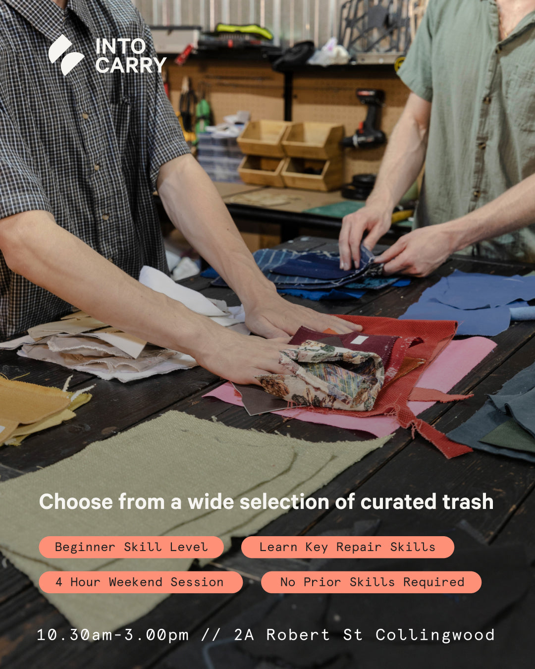 👜 No prior sewing skills required! We tailor this four hour upcycling workshop to suit your skill level :)