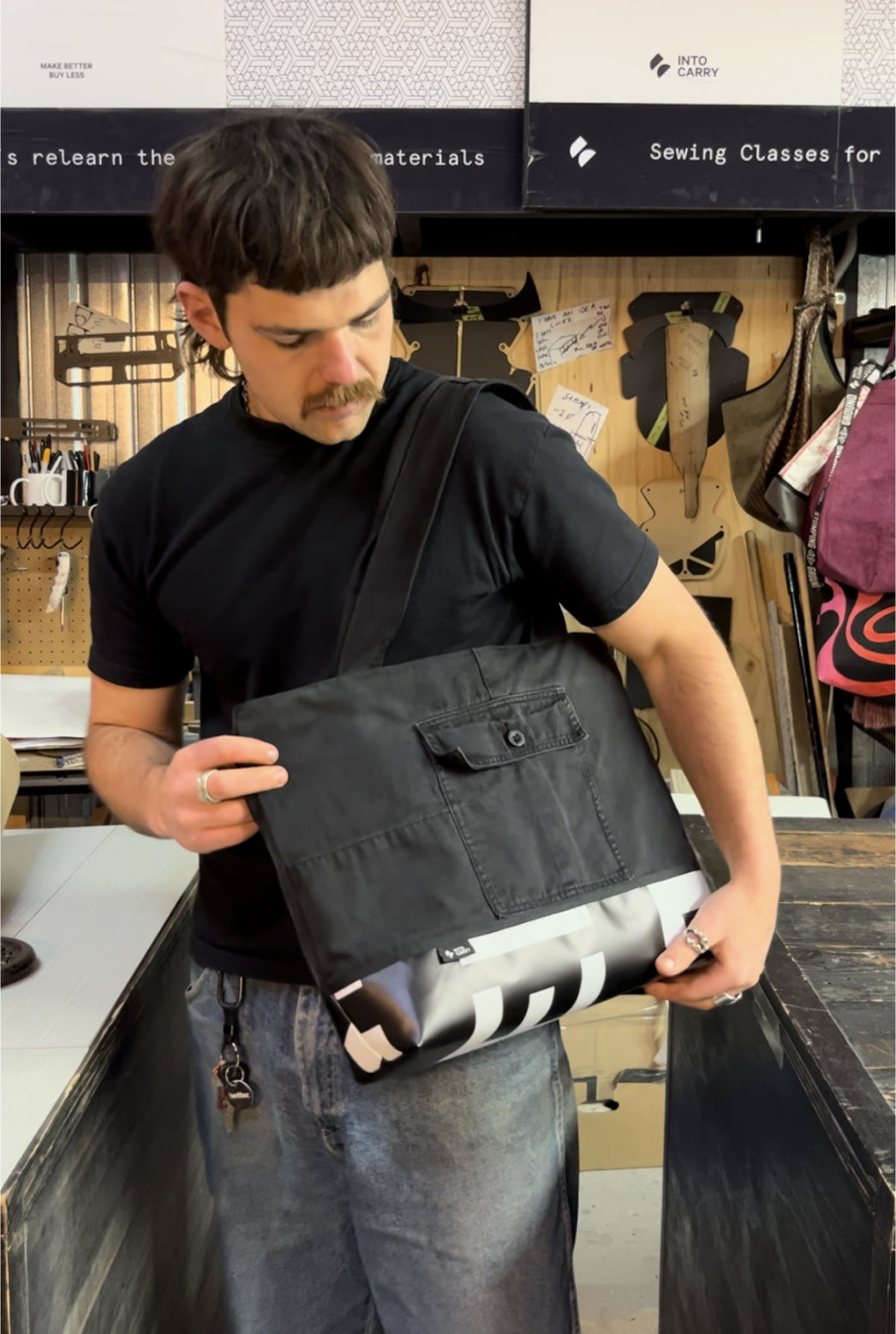 This is a great session to share with a mate, learn to sew or see if the world of bag upcycling is for you. You’ll leave with a set of new sewing skills and your own tote bag made from busted pants.