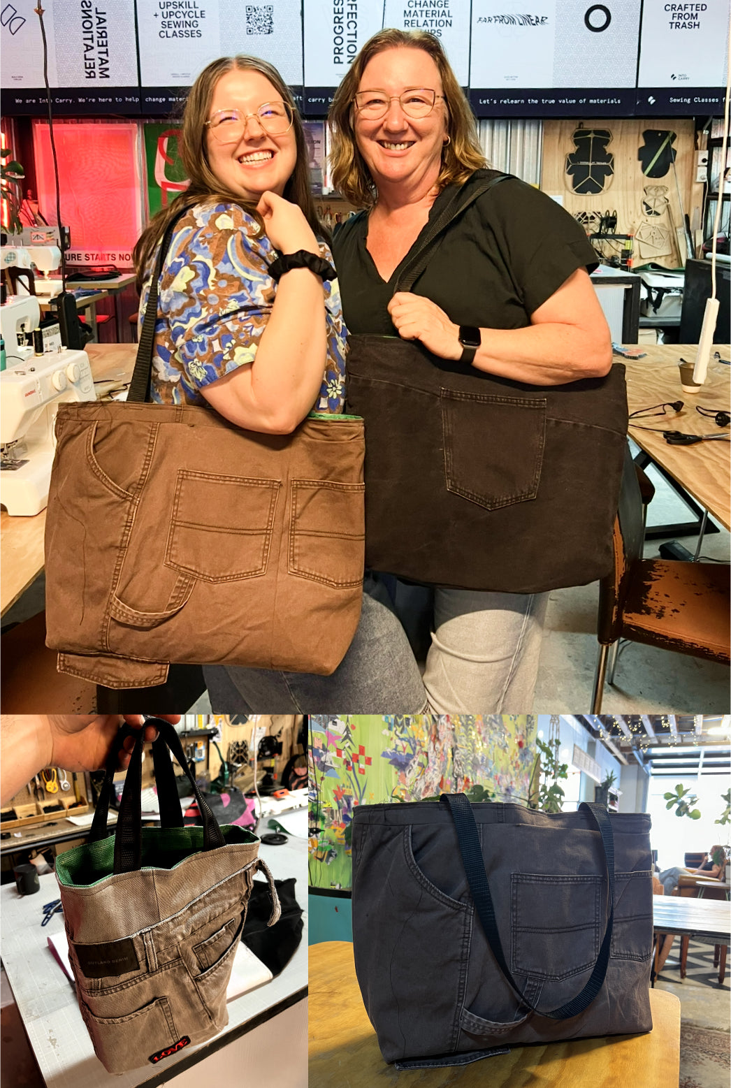 Learn to sew, upcycle pants and make a lined tote bag with this 4 hour weekend workshop.