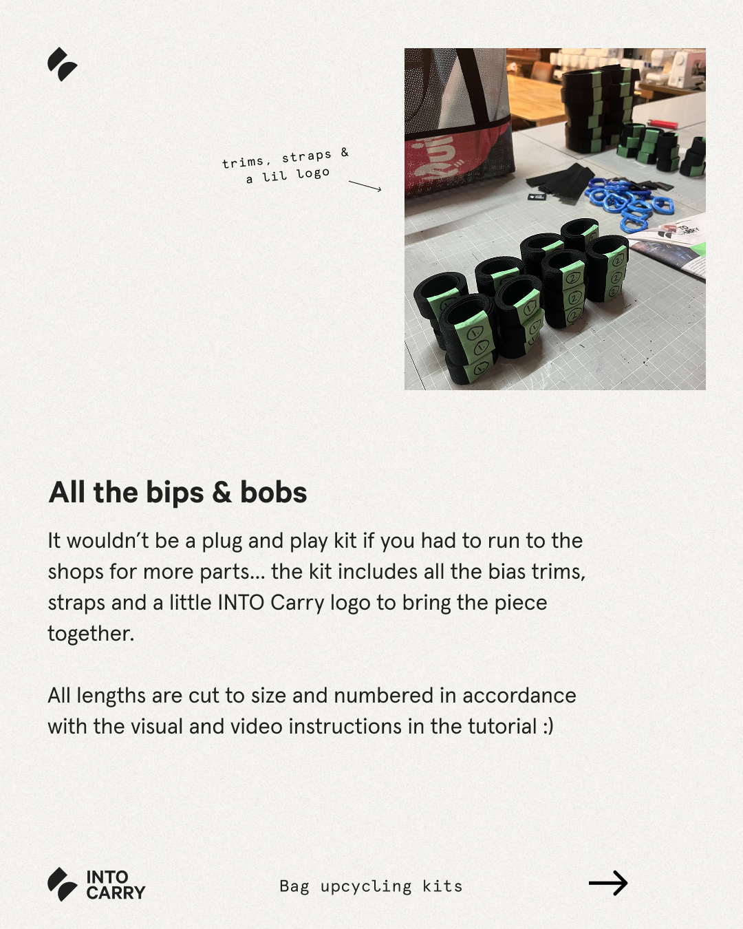 ♻️ If you're looking to start upcycling bags but don't know where to start, this kit has the materials, hardware and instructions needed to turn discarded materials into durable carrywear.