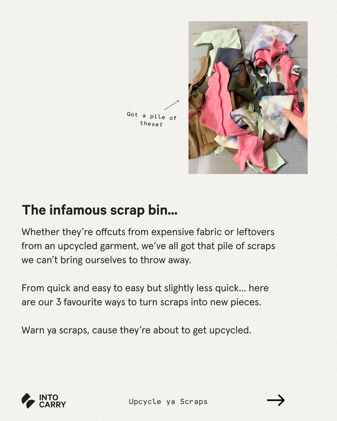 From quick and easy to easy but slightly less quick... here are our 3 favourite ways to turn scraps into new pieces. Warn ya scraps, cause they’re about to get upcycled.
